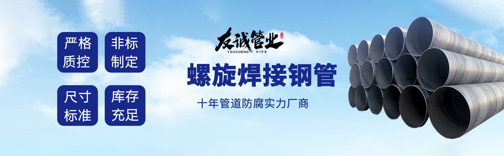 滄州友誠管業(yè)有限公司是一家專業(yè)從事生產(chǎn)防腐涂塑管道及管件于一體的大型企業(yè)。公司注冊資金8600萬元,位于中國管道生產(chǎn)基地—河北鹽山縣,近靠京滬高速、榮烏高速、黃石高速30公里,高鐵滄州西站40公里,天津國際機(jī)場、濟(jì)南遙墻機(jī)場150公里,為客戶來訪及業(yè)務(wù)發(fā)展提供了便利的交通條件。 鋼管系列:螺旋鋼管、無縫鋼管、ERW直縫焊管、JCOE埋弧焊直縫鋼管、熱鍍鋅鋼管。 涂塑系列:內(nèi)外涂塑鋼管、涂塑復(fù)合鋼…… 了解更多